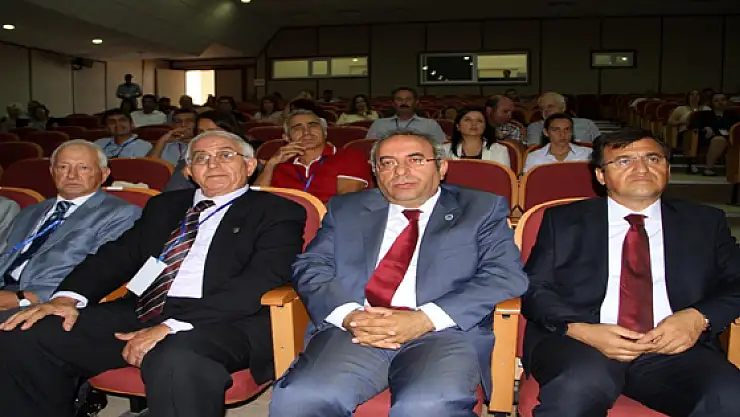 Jeoloji Mühendisliği Bölümü Başkanı Prof. Dr. Sefer Örçen tarafından YYÜ Rektörü Peyami Battal’a plaketin verildiği sempozyum, konuşmacıların söz almalarıyla devam etti.