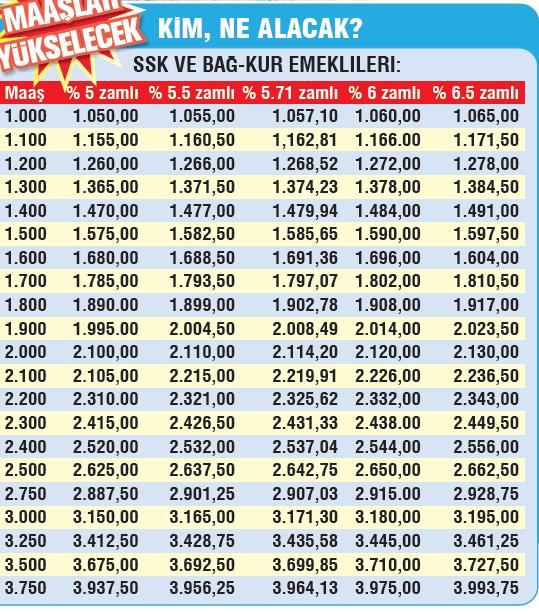 İŞTE ZAMLI EMEKLİ MAAŞLARI;